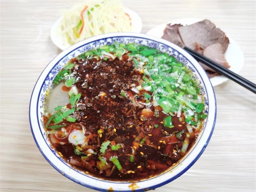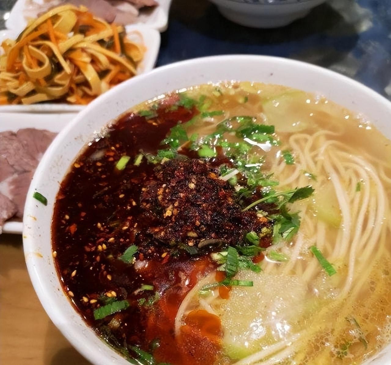 陈记清汤牛肉面的总店在西固区,离主城区有一段距离,但是非常值得专门跑一趟去吃。陈记的牛肉汤味道浓郁,牛肉味非常足,油泼辣子也很香,面条筋道,各个方面都在兰州牛肉面里属于拔尖的。