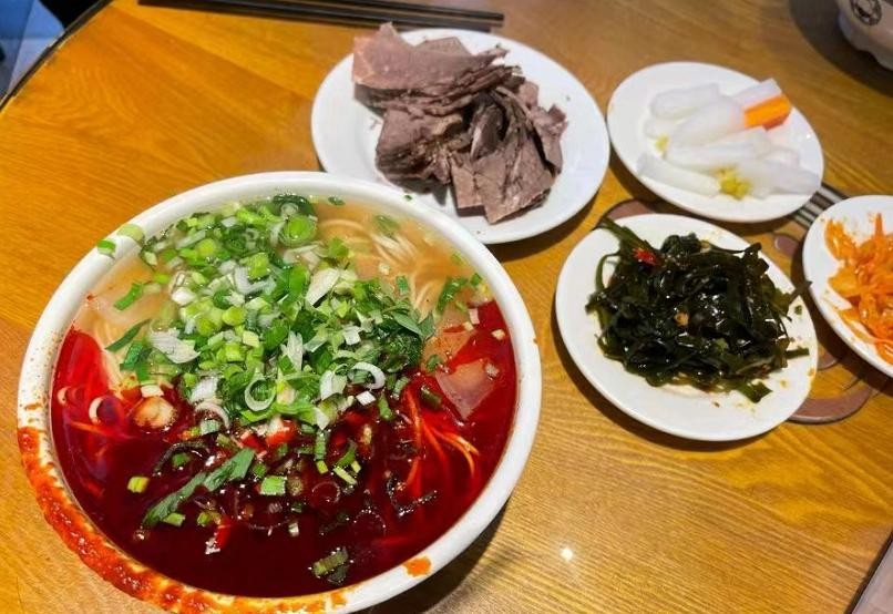 安泊尔牛肉面也是兰州很有名的牛肉面品牌,外部装修很气派上档次,总店有三层楼,还能看拉面表演。安泊尔的面很筋道,汤的口味偏清淡,另外安泊尔的酸奶也特别好喝,吃完面再喝杯酸奶解腻,让人直呼满福。