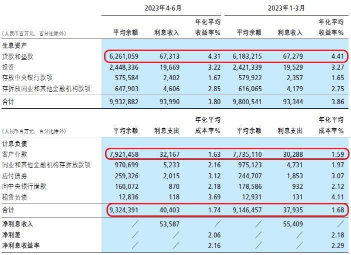 首先看净息差,实际披露值2.16%,远低于预估值。招行公布了二季度的资产收益率和负债成本的数据,用这个数据和一季报的数据进行对比,如下图1所示: