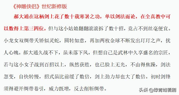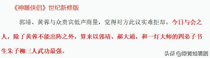 这样看来论武功能胜过郝大通的,只有郭靖、黄蓉、朱子柳三人而已。
