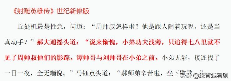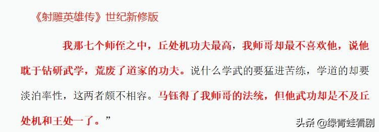 这就可以看出来,王处一在神雕被马钰赶上了。
