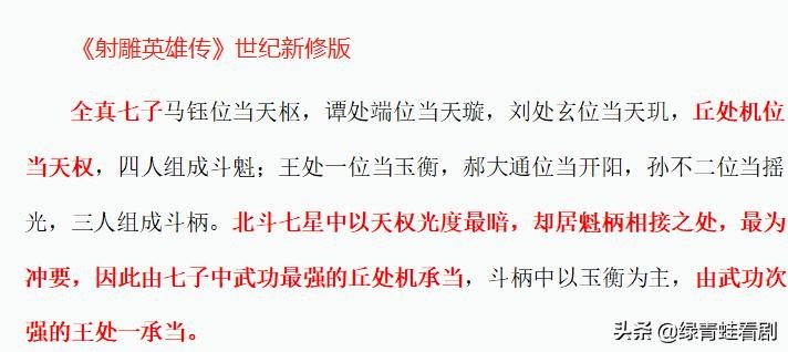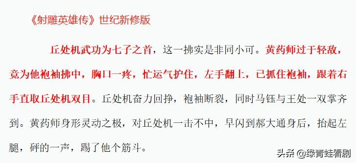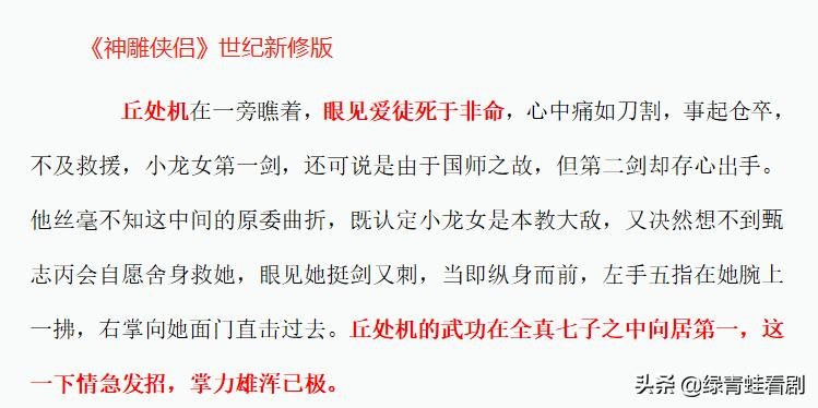 旁白又说丘处机的武功,在全真七子之中向来是第一。
