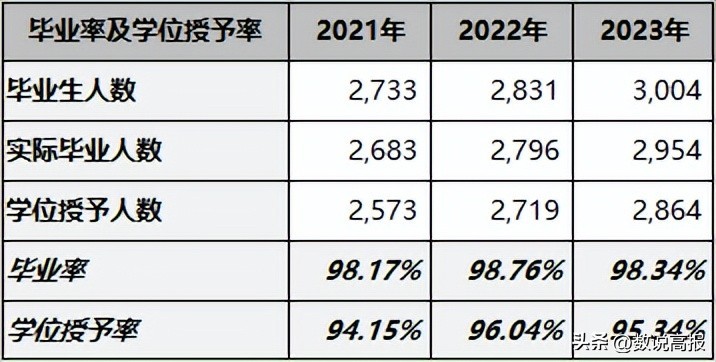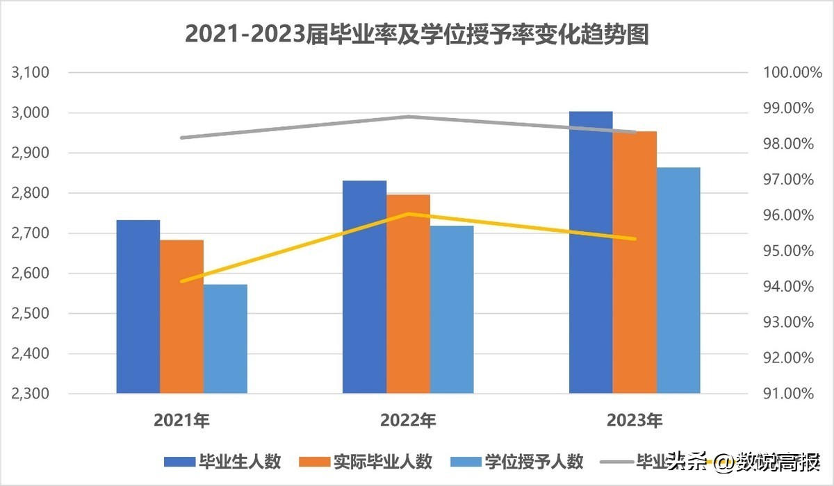 ▲2021-2023届本科毕业生毕业率及学位授予率:
