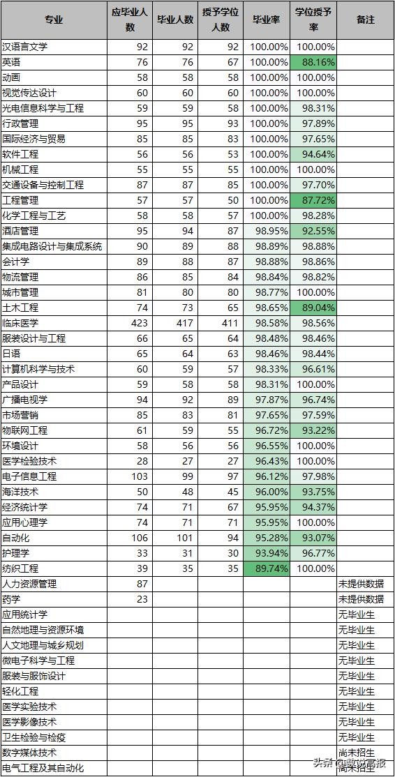 从下表中可以看出,学校的毕业率及学位授予率一直都维持在比较高的水平。