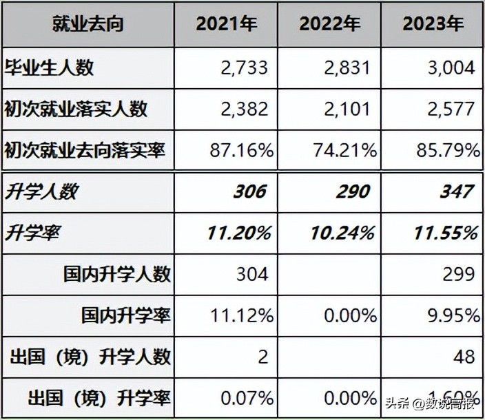 从下表可以看出,初次就业去向落实率在2022年较大幅度下降,但是2023年已经基本恢复到2021年的水平。