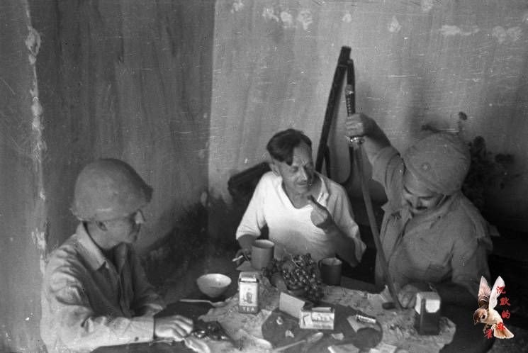 14. 延安(中国),哈里森·福尔曼用军刀切割食物。1944年