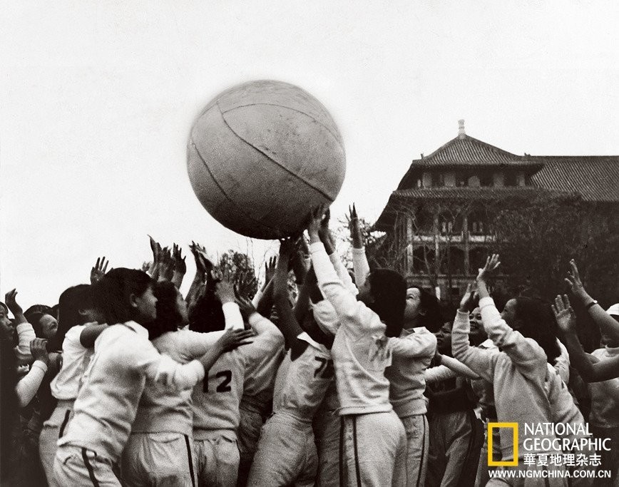 07. 【广州】(1937年12月号)广州一所女子学校的学生们闹哄哄的玩着推球比赛,沉浸于机智、体能并重的激烈拼搏。东方女性的“三寸金莲”与寂然的传统生活方式,正在被户外游戏盒体育运动的热烈追求所取代。