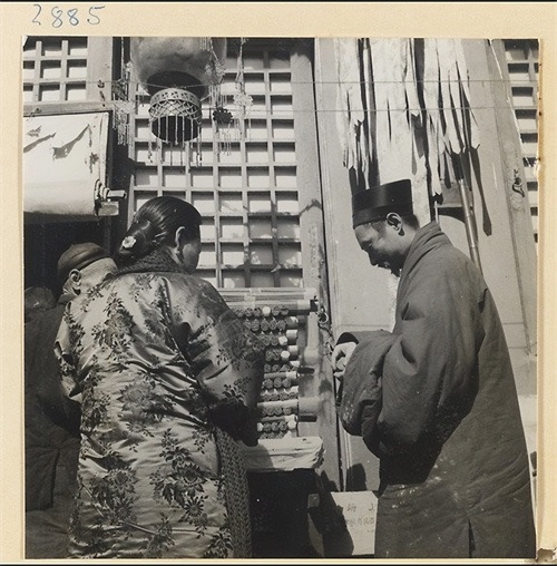 17. 过年时白云观外道士站在卖香的妇女旁.