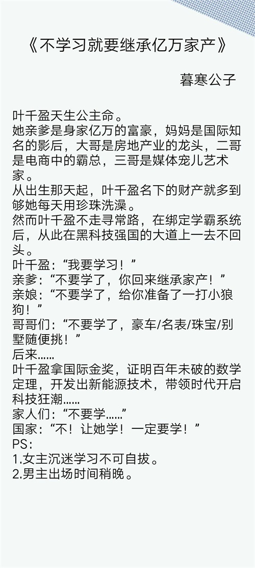 (ps:我很喜欢女主可以在某方面做出成就的文,会让我看了之后充满斗志!)