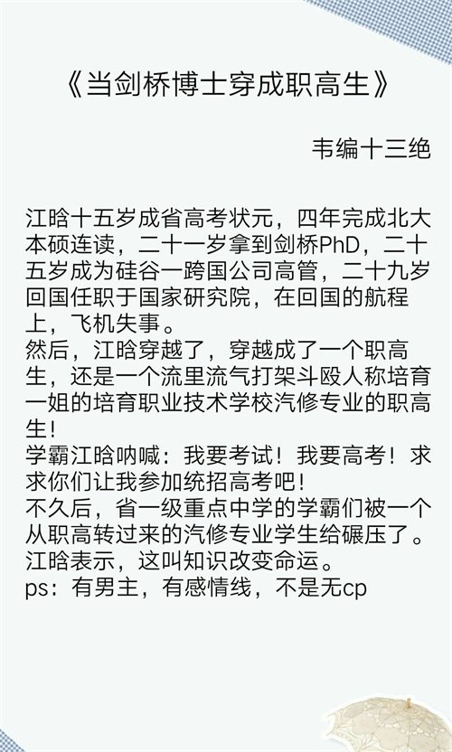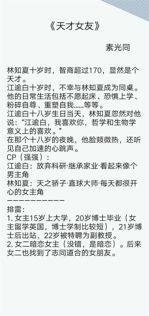 今天盘点6本女主是学霸的文,回想读书的时候,好难过,为什么我不是个女学霸呢?