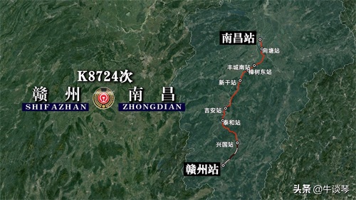K8724次列车运行线路图:江西赣州开往南昌,全程412公里