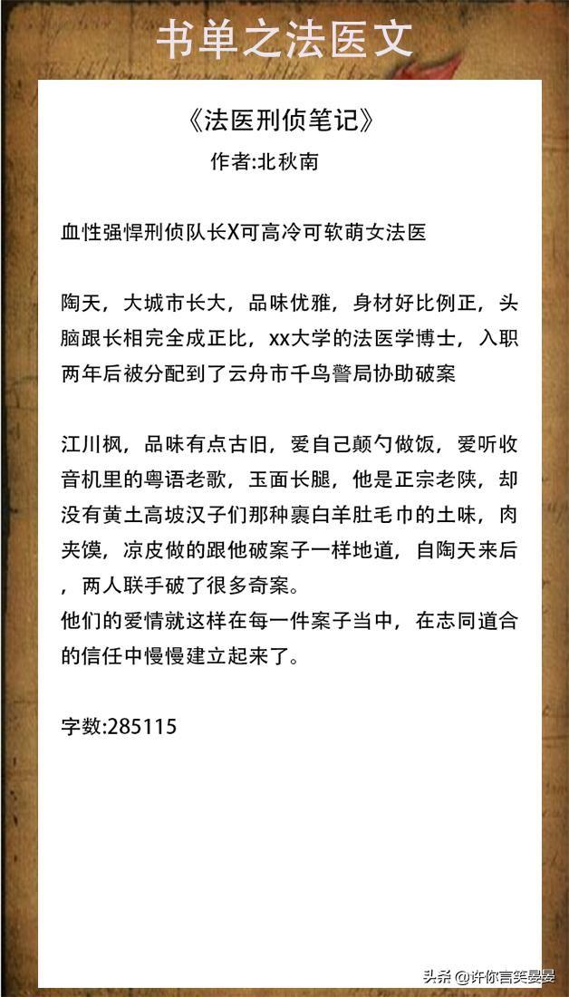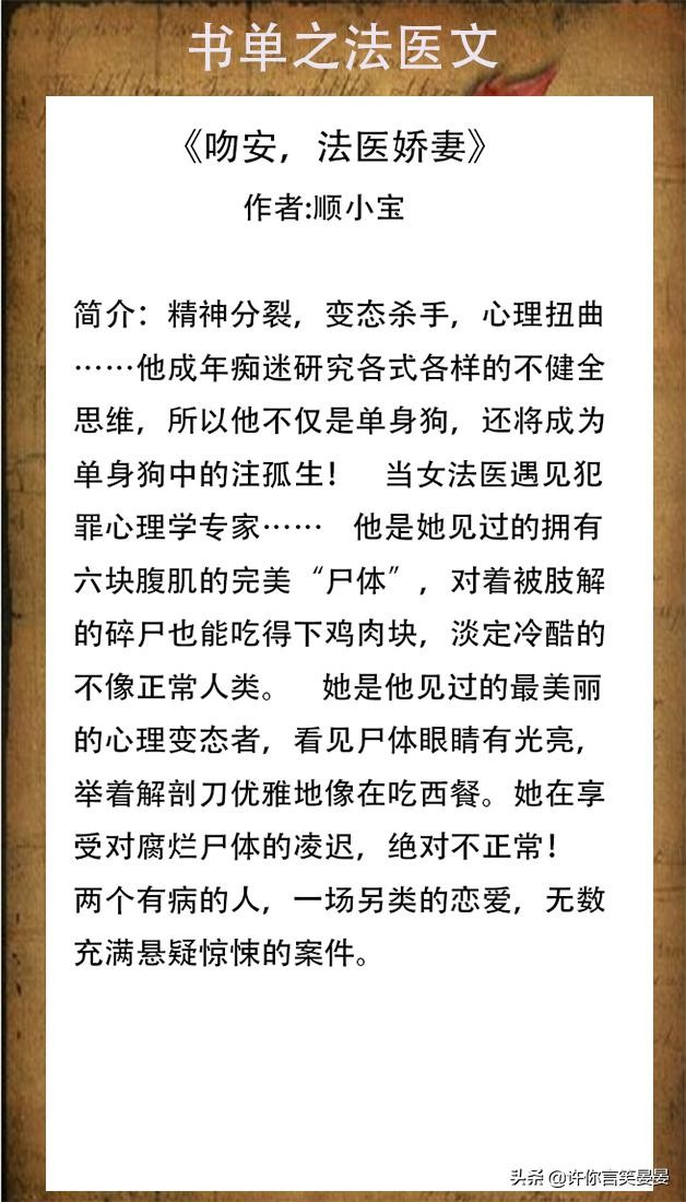 法医刑侦文,《吻安,法医娇妻》男主犯罪心理学专家,女主是法医