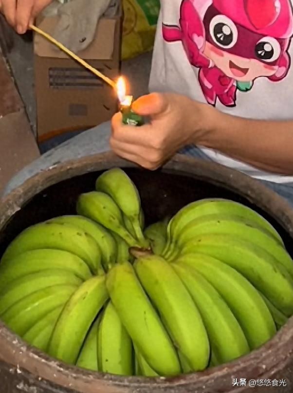小时候我家有那种老大的陶瓷缸,把香蕉顺着缸壁一圈一圈地垒起来,中间点香,然后用厚布给盖上,香蕉缸里的温度会一点一点地升上去,缸里也弥漫了大量的白烟。