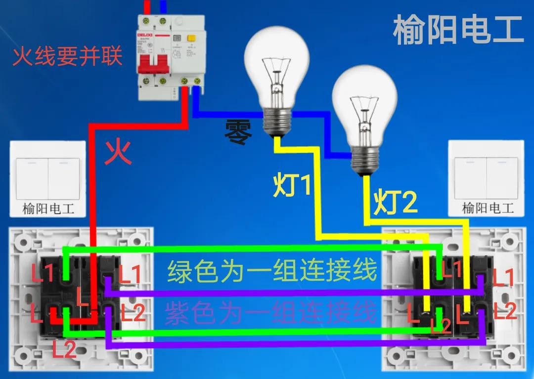 双开双控开关的接线方法图解,两个地方的开关可以分别控制两盏灯
