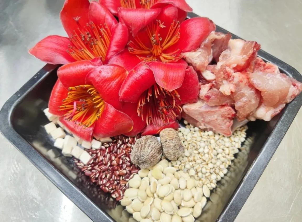 木棉花是广州市的市花,人们常常把刚从树上掉落的木棉花拿回家晒干,用作日常煲汤的材料。木棉花具有清热去湿的功效,所以老广经常用它来煲汤。春季人们常常容易困湿,这时木棉花作为主汤料就可以派上用场了,那要怎么样煲出一锅美味的去湿汤呢?!还要搭配其他食材才能发挥它最佳的功效,步骤如下:
