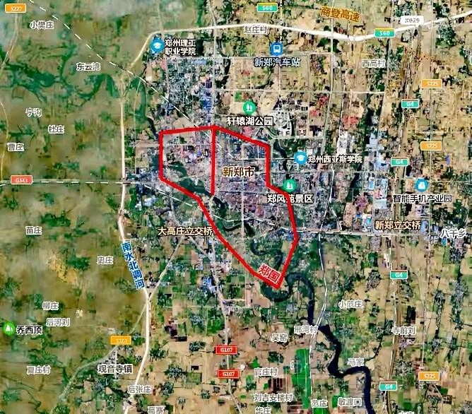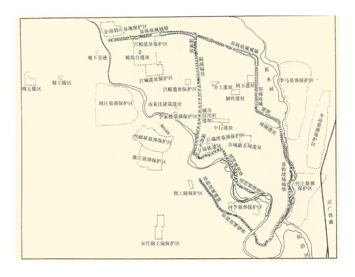 郑韩故城周围遗址及保护区分布