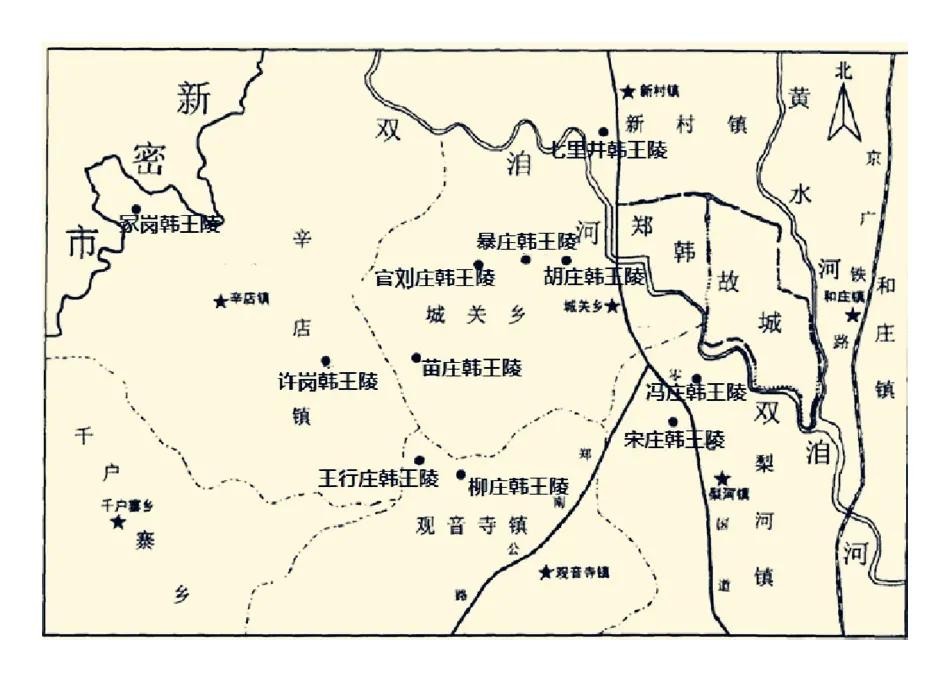 郑韩故城周围韩王陵分布