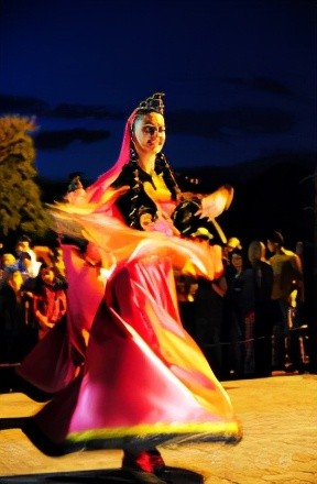 阿塞拜疆的民族舞蹈以其独特的形象和美丽鲜明的色彩驰名海外。 [3] 阿塞拜疆人通过舞蹈、音乐和媒体等多种艺术手段来表达自身感情。阿塞拜疆的民间舞蹈非常古老,类似于毗邻的高加索地区和伊朗。集体舞从东南欧到里海地区都是一种常见的舞蹈形式。表演集体舞的时候,舞者们围成半圆或者圆形。而领舞通常扮演着特殊的角色,他通过挥舞手中的方巾做出各种信号和变化来指导整个团体移动时的的舞步、动作和方向。男女皆可表演的单人舞除了固定的舞步之外还带有微妙的手势。 [1]