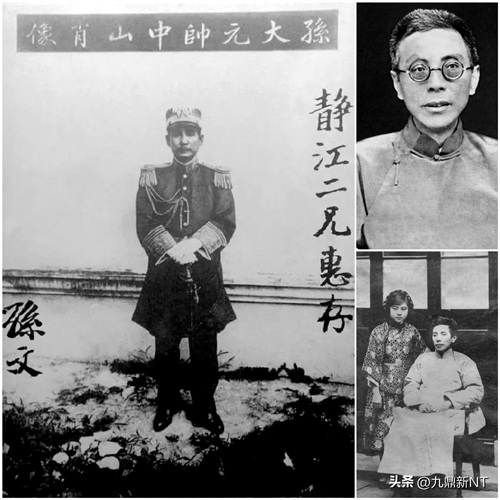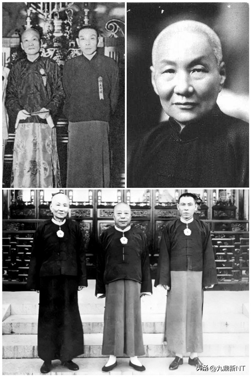 右上为汉奸张啸林,下为罕见的上海三大亨合影,由左及右依次为张啸林、黄金荣、杜月笙