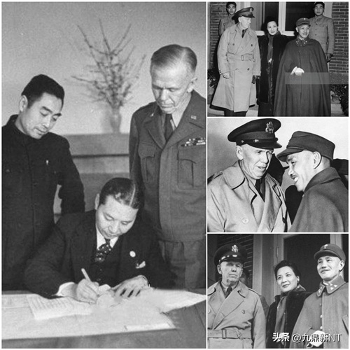 左图为1946年1月周恩来参与签署停止冲突的命令与申明,没过多久,蒋介石撕毁协议全面挑起内战