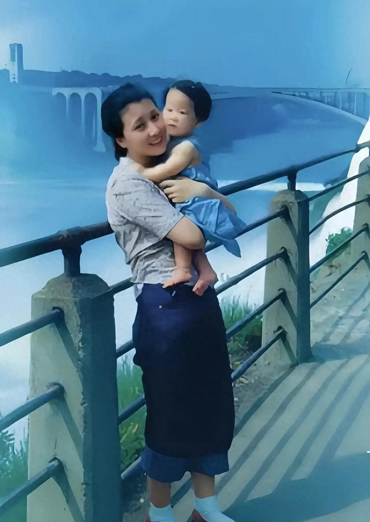 这是1952年,蒋英和女儿钱永真,在尼亚拉加大瀑布前留影