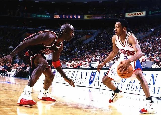 初入联盟艾弗森无所畏惧,球场中的他敢打敢拼,即便是面对篮球之神,连续两次鬼魅般的cos over晃开乔丹,接着急停一条完美的弧线球落入网,全场沸腾,人们起身为他喝彩。