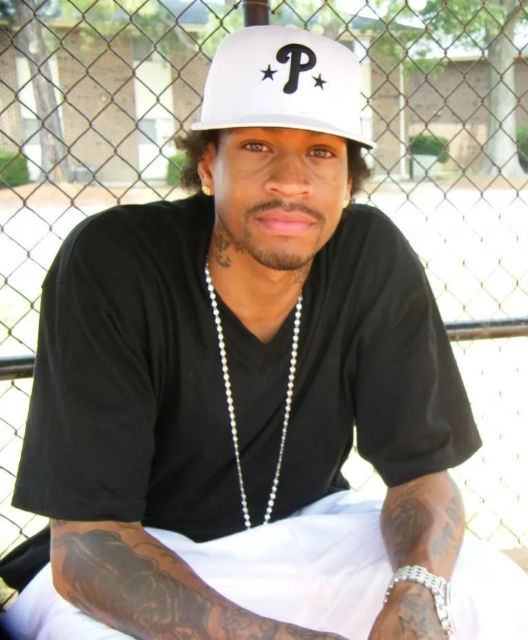 之后几年间艾弗森迅速崛起,他用1.83米真服全世界球迷,人们欣赏的不只是他的球技,还有他那极傲不逊的装扮地拢,勾头个性纹身,宽松衣服,他将黑人嘻哈与篮球真正的结合,重新定义了这个时代hip hop风潮,席卷整个联盟,引起一众球员争相模仿,同样也掀起了嘻哈文化的世界潮流。
