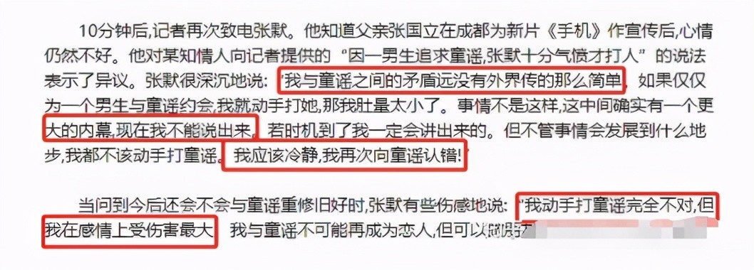 并且,童瑶被张默暴打之后,也曾对记者承认: