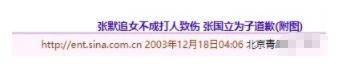 2003年12月16日,21岁中戏学生张默(张国立的儿子),在中戏女生宿舍门口,对才18岁的童瑶,大庭广众之下对其殴打!造成其身体组织多处损伤,鼻骨骨折!