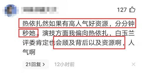 “民意”觉得这个奖项应该是属于热依扎的。同样作为社畜的观众,留言区也表示,演员本身背后的资本,实力,也确实能影响到最后的结果!