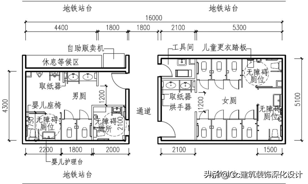 案例6 适用于大型商业设施、娱乐设施、车站等区域内的无障碍公共卫生间
