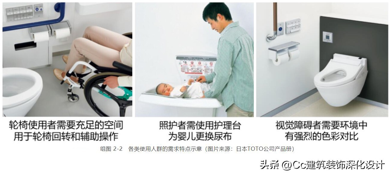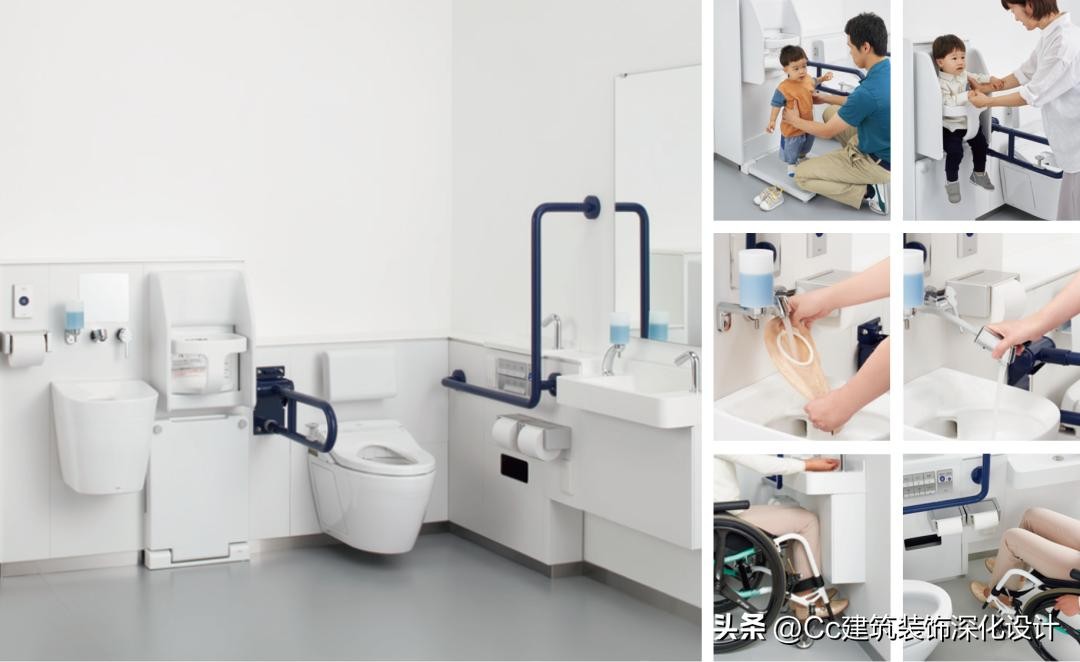 组图 5‑10 案例10:适用于多种人群(老幼病残孕)使用的综合多功能卫生间设计案例(图片来源:日本TOTO公司产品册)
