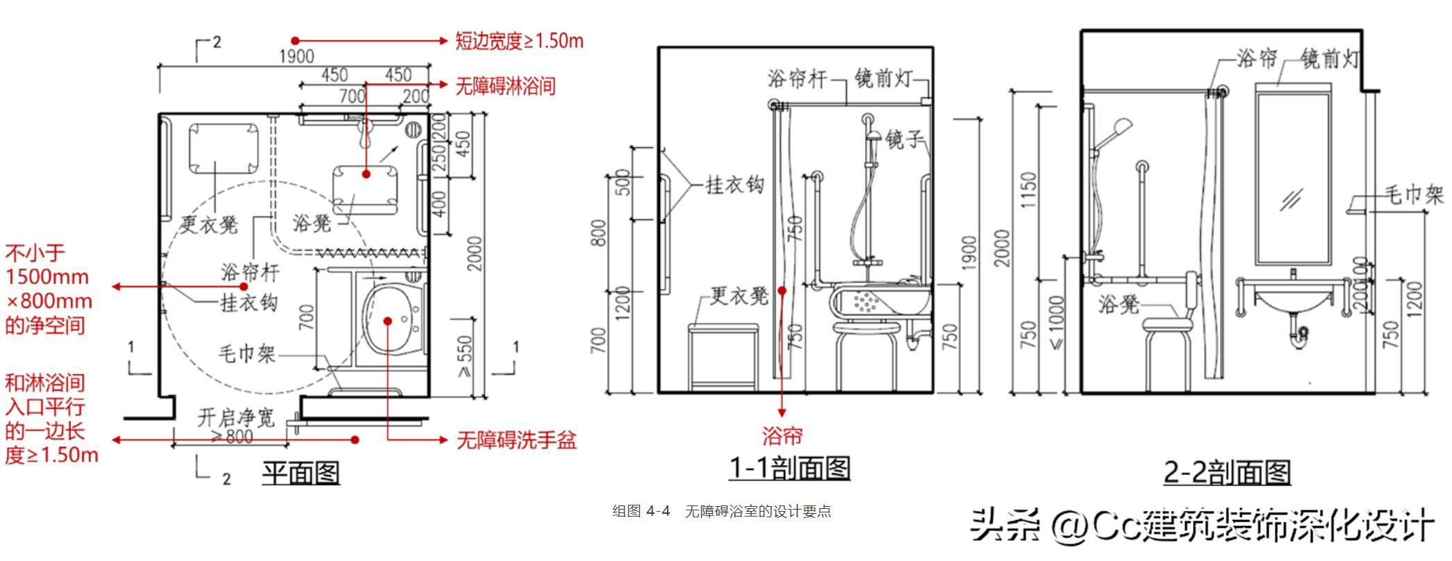 组图 4‑12 无障碍盆浴间的设计要点