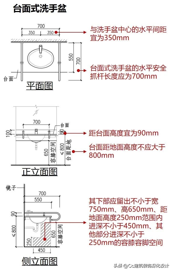 图 4‑10 台面式洗手盆的设计要求