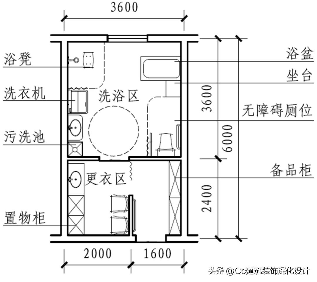 案例1 适用于住宅、公寓、酒店客房等居住单元中的卫生间