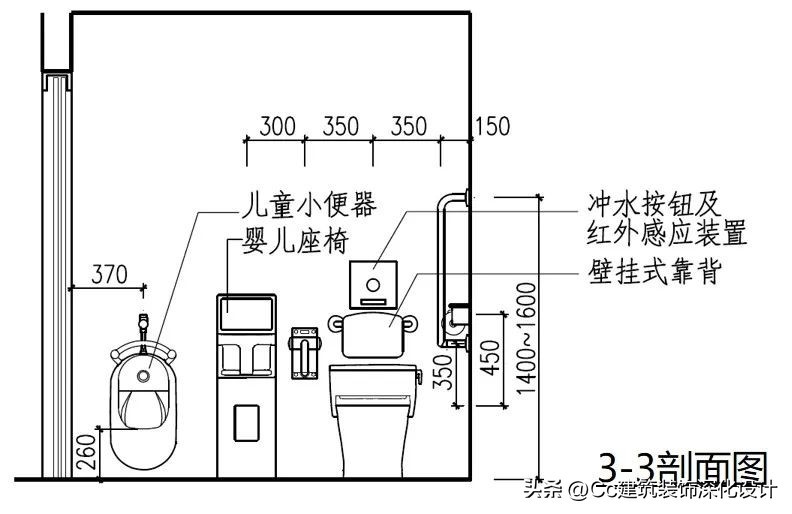 2.4 大中型卫生间分散布置不同类别的厕位,提高使用效率