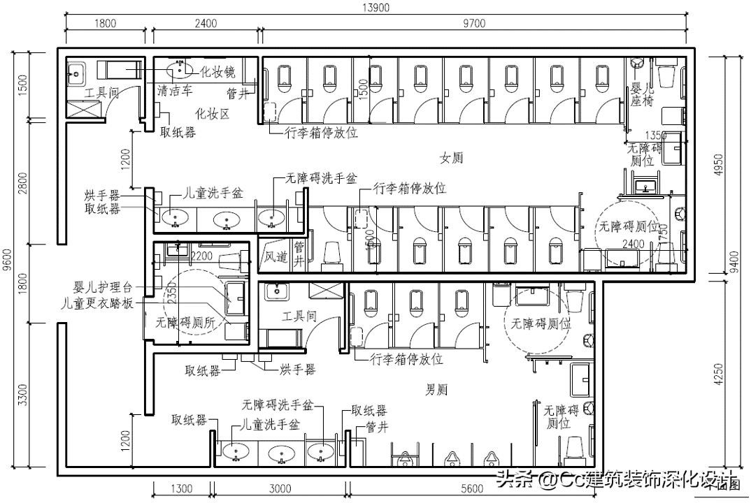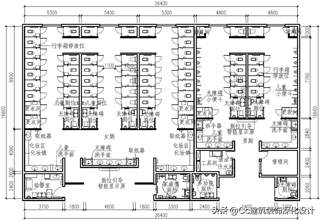 案例7 适用于机场、火车站等大型交通建筑设施内的集中式公共卫生间