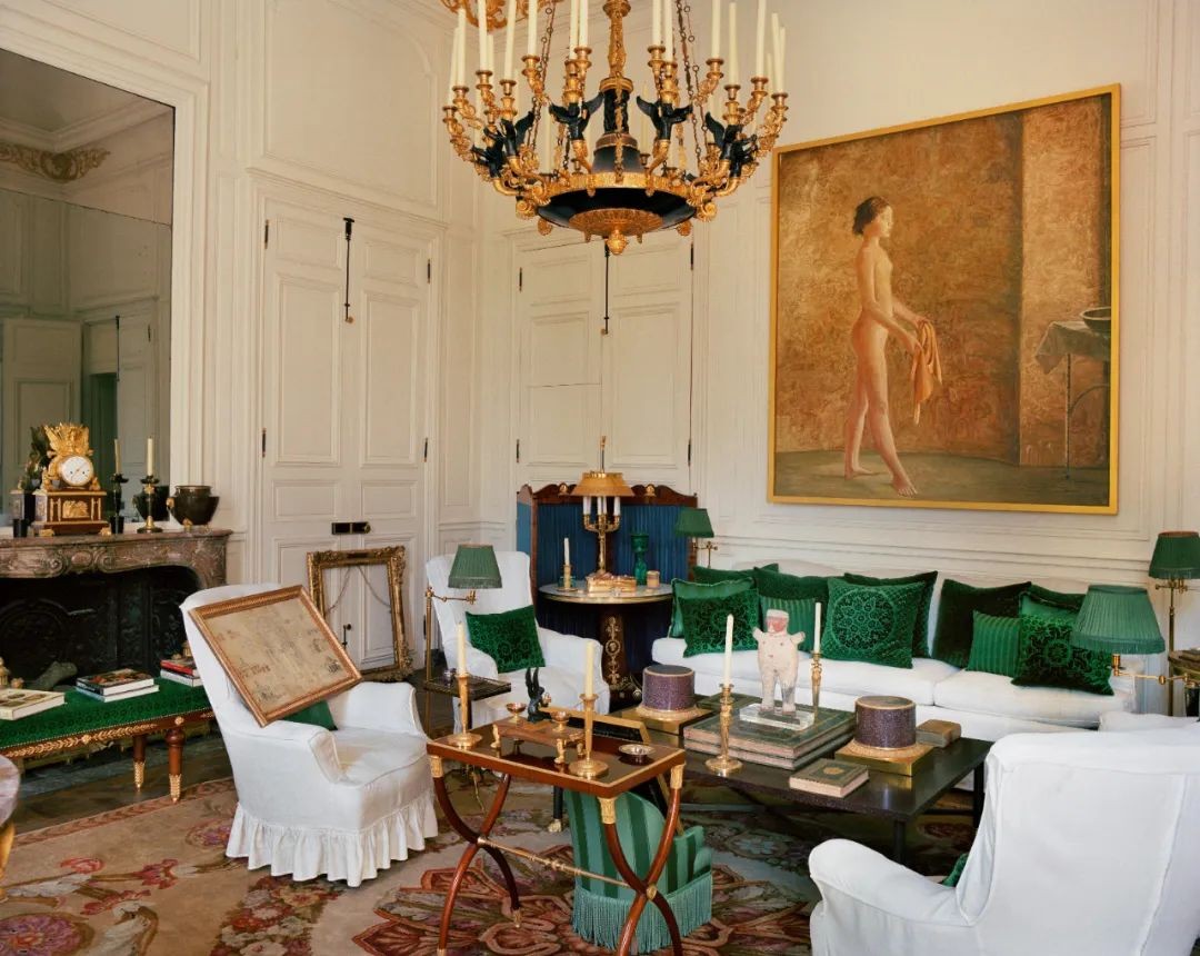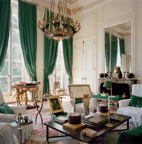 整栋宅邸以纪梵希最喜爱的绿色和金色结合,显得庄重而典雅/Grand Salon