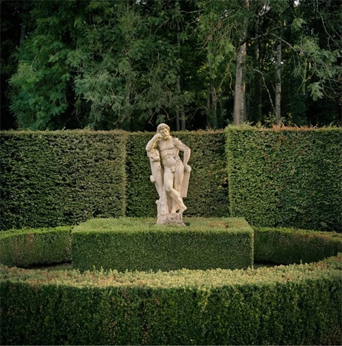 放眼室外,是纪梵希与美国著名园艺家梅隆小姐携手设计的花园。精心挑选的雕塑被均匀地分布在圆环中,不知何处便会瞥见古希腊神衹的伟岸身躯,或是自2个世纪前眺望的青铜鹿首。