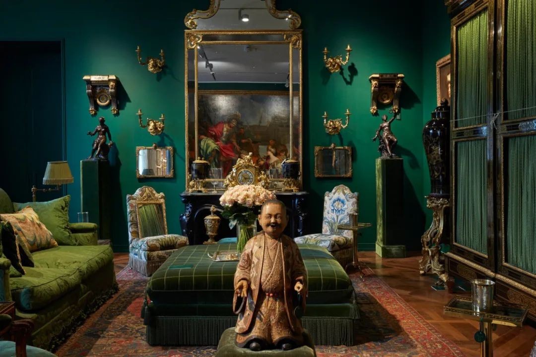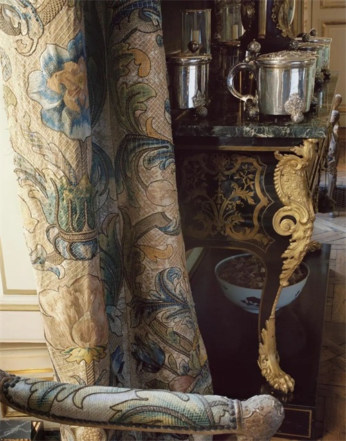 来自17或18世纪的家具、镜子、烛台、硬石器皿、花瓶共处一室,以让人眼花缭乱的丰富材质遍布房间,却以一种严谨而对称的方式安置,没有任何一件显得多余。
