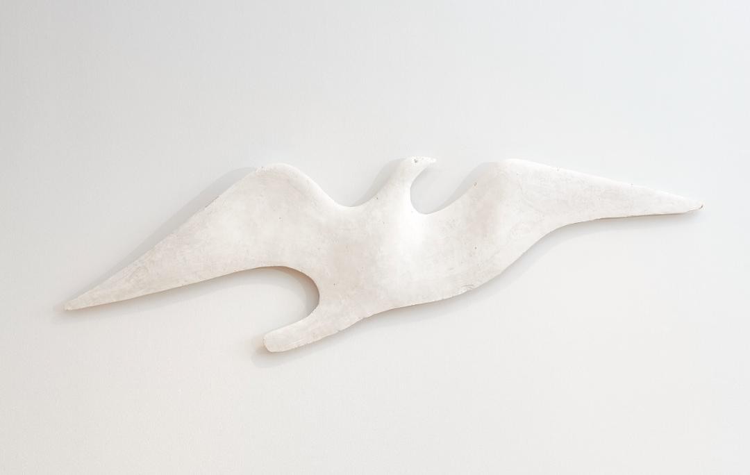 阿尔伯托·贾科梅蒂于1937年制作的石膏信天翁挂在壁炉的上方,巧妙地融入了木质的背景