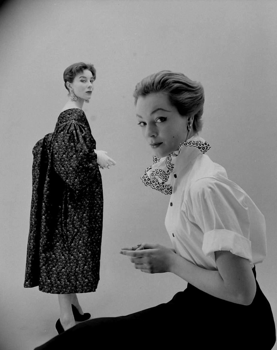 1952年,纪梵希创立个人品牌并举办第一场时装发布会,从古典中汲取灵感的他将路易十四宫廷礼服的袖口和领口融入了白棉布材料中/“Bettina Blouse”系列
