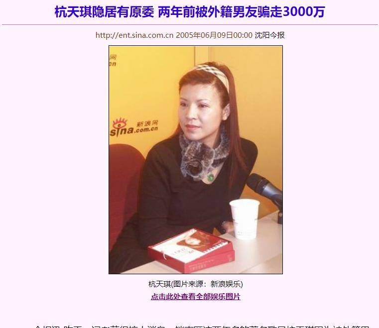 所有人都在追问杭天琪到底去哪里了,直到2005年媒体爆出一条消息,她被外籍男友骗走了3000万。
