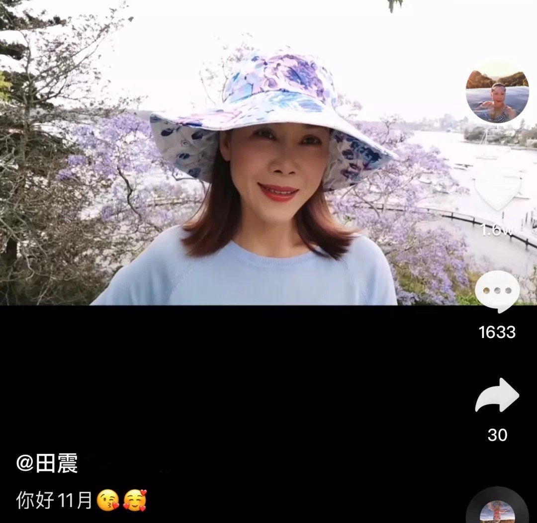 2021年11月,田震在社交平台上晒出照片,年过半百的她,脸上写满了温柔和从容。