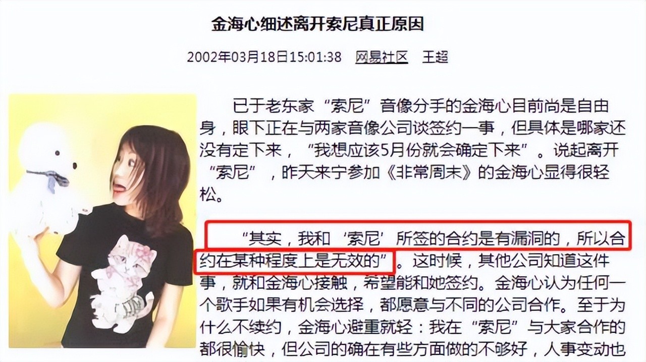 后来的金海心签约过华纳唱片,奈何这家公司优秀的歌手太多了,资源根本倾斜不到她身上。