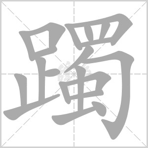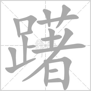 读chuò,形容越级,不按阶次而行。《公羊传·宣公六年》:“躇阶而走。”