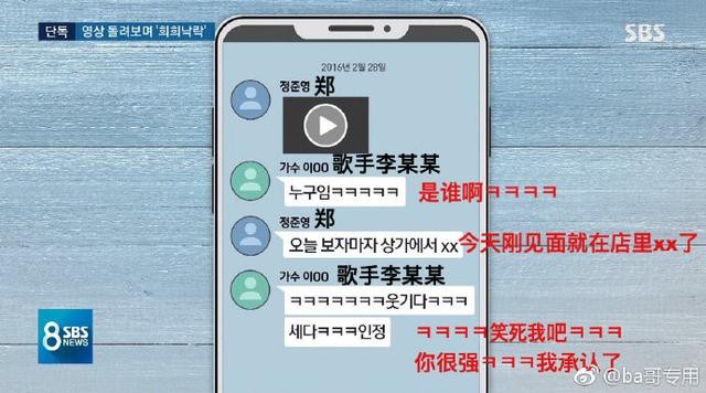 既然已经被立案调查,那么事情进展就会更加快速和顺利了。继前几日曝出李胜利上交了手机后,今天韩国SBS电视台公布了bigbang成员李胜利和韩国歌手郑俊英的聊天记录,郑俊英经常偷拍女性,并分享小视频给其他男艺人们还到处炫耀,性质比较恶劣。