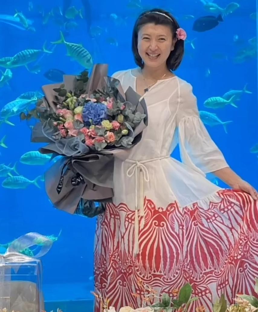 闫学晶本人心情非常好,全程都是满脸笑容,嘴角都快咧到耳根了,她一会戴着寿星帽手捧蛋糕拍照,一会抱着巨型捧花,已经51岁的她皮肤白皙滑嫩,鹅蛋脸大眼睛的五官和年轻时毫无变化,搭配一头气质短发,温婉柔和亲和力十足,美貌依旧动人。