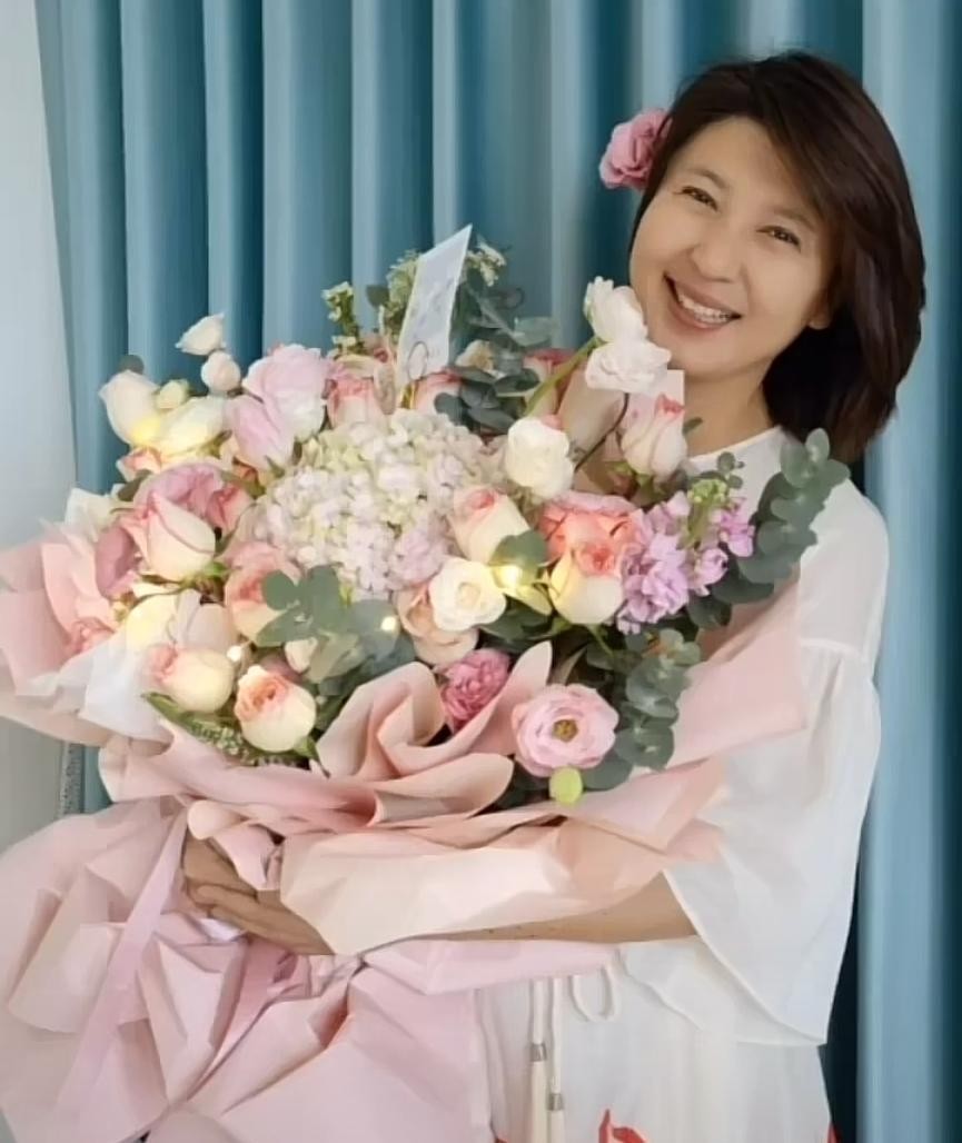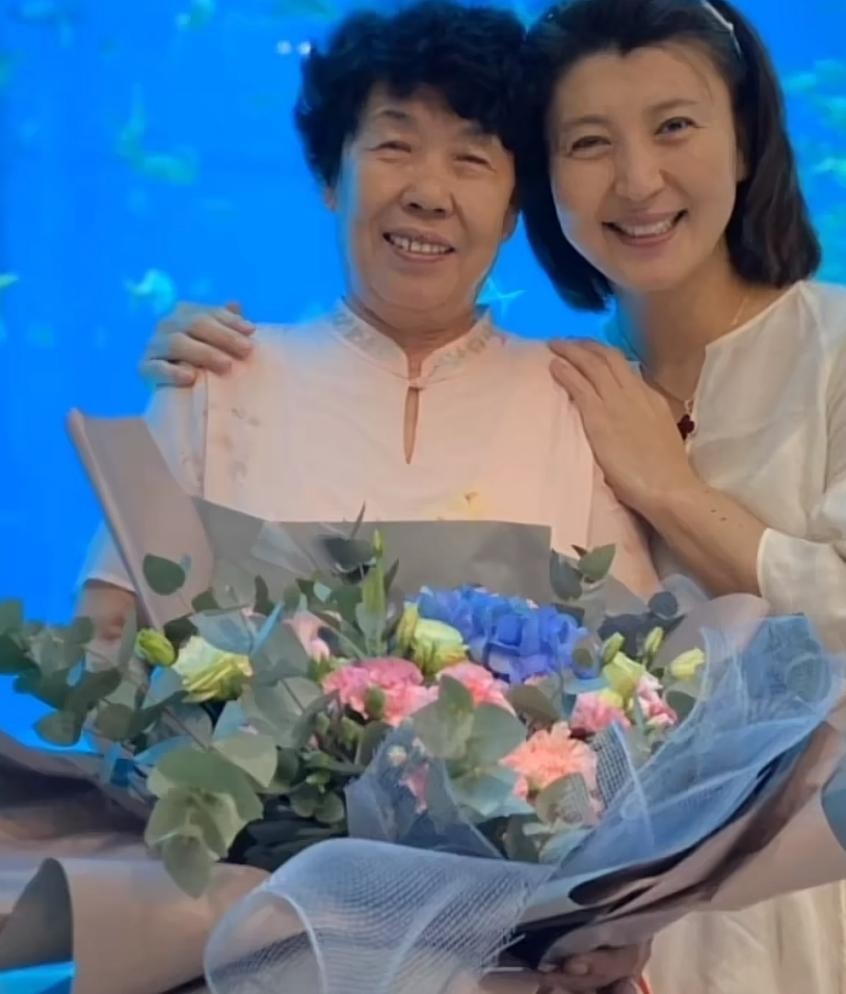 闫学晶庆51岁生日!抱着巨型花束嫩成少女,和母亲同框模样相似