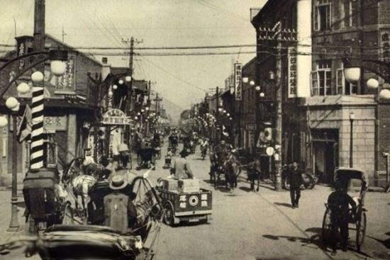 这是伪满时期长春街头的照片,我们会发现马车和行人是靠左侧通行的。那时,日本对长春本地居民进行奴化政策,让他们熟悉日语,学日本文化,所以“大回”、“小回”就成为了俗语,很多长春人都知道。